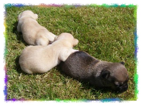 via cesarean at Maplewood Animal Hospital. 3 pups, 2 girls and a boy.