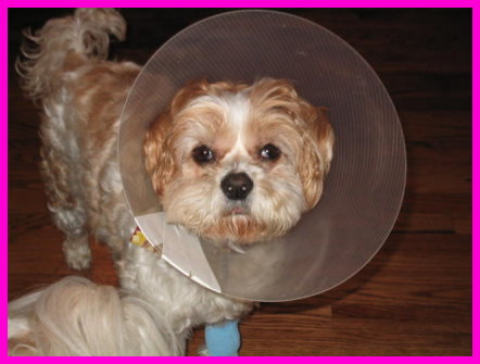 She HATES the cone on her head, but in all her pain and suffering she has just