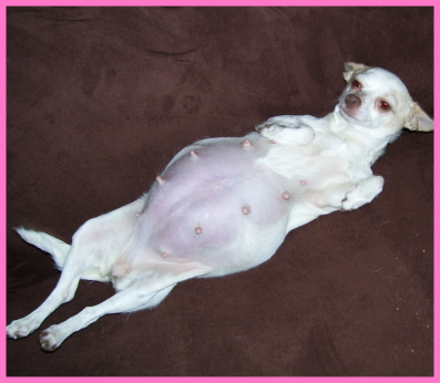 6:30pm, stopping off at Animal Emergency Care- to see our friends there, and to show off this beauty. The did a quick ultra sound to see how far along she was. Dr. Jennifer says about 45 days along. Normal gestation is 63 to 65 days so that puts us at our whelping date of around March 24th...her belly is already so big!