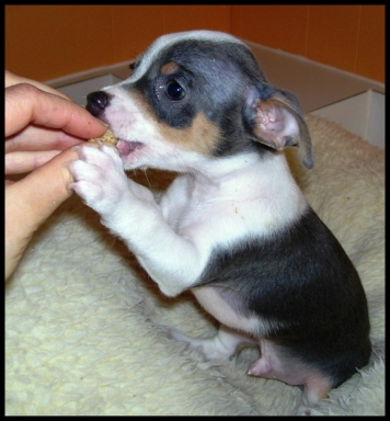 All puppies get three time daily handling exercise, besides all their regular love sand kisses. Touching feet, ears bellies with different textiles helps their brain development.