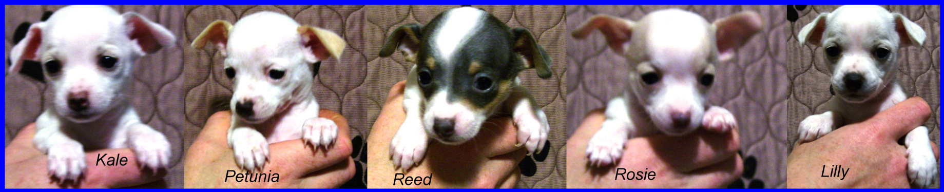 Other pups are doing great. All are fat and happy. We are supplementing them with milk replacer, as 5 pups is a lot for a Chihuahua to supply enough milk for.