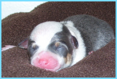 FAT...FAT...FAT.... I love fat puppies! Everyone is doing well. All the pups are standing. Reed and Kale are trying their best to walk (without falling over!)