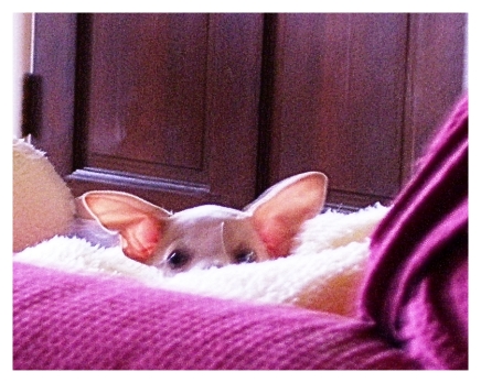 Rosie woke up at 5am, as usual, a little whining to let us know she needed to go outside. We quickly took her out and as the perfect pup she pee'd and poo'd. After getting her potty treat, Then RAN to our bed and got under the covers as quickly as she could! Is she a CHI or what! She settled in and we got a few more minutes of sleep.