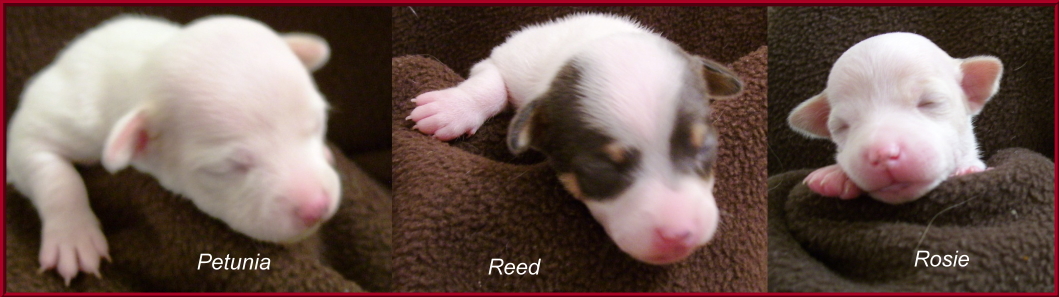 All the puppies are doing great. Everyone's eyes are open and ears and just now starting to open. They lift their heads and begin to track your movement when you walk into the room! Kale, Reed and Lilly are all attempting to stand with Kale making the most progress to walking.