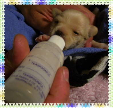 all 3 pups with a feeding tube, vs. 30to 40 min to bottle feed) but its
